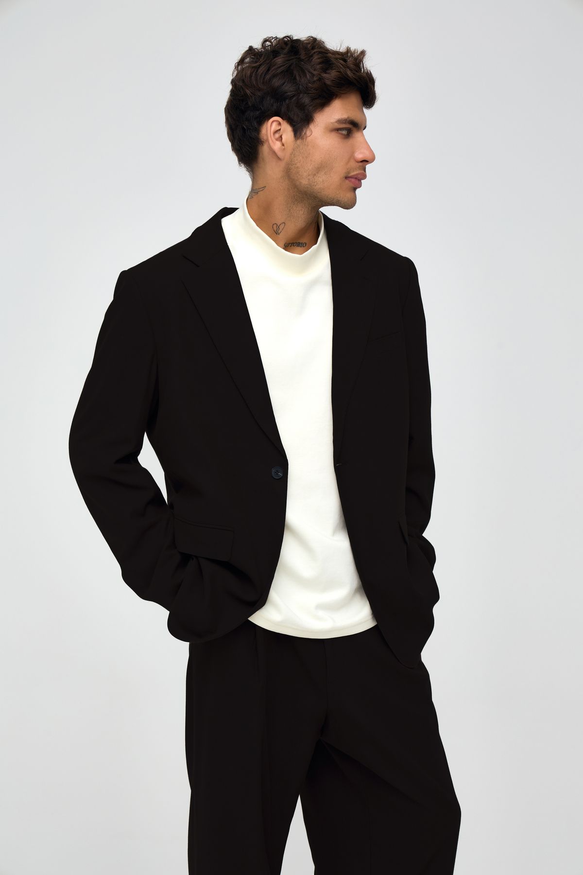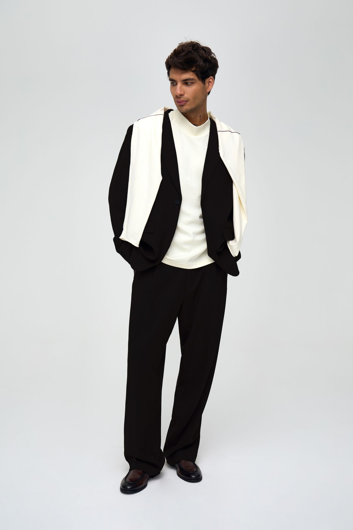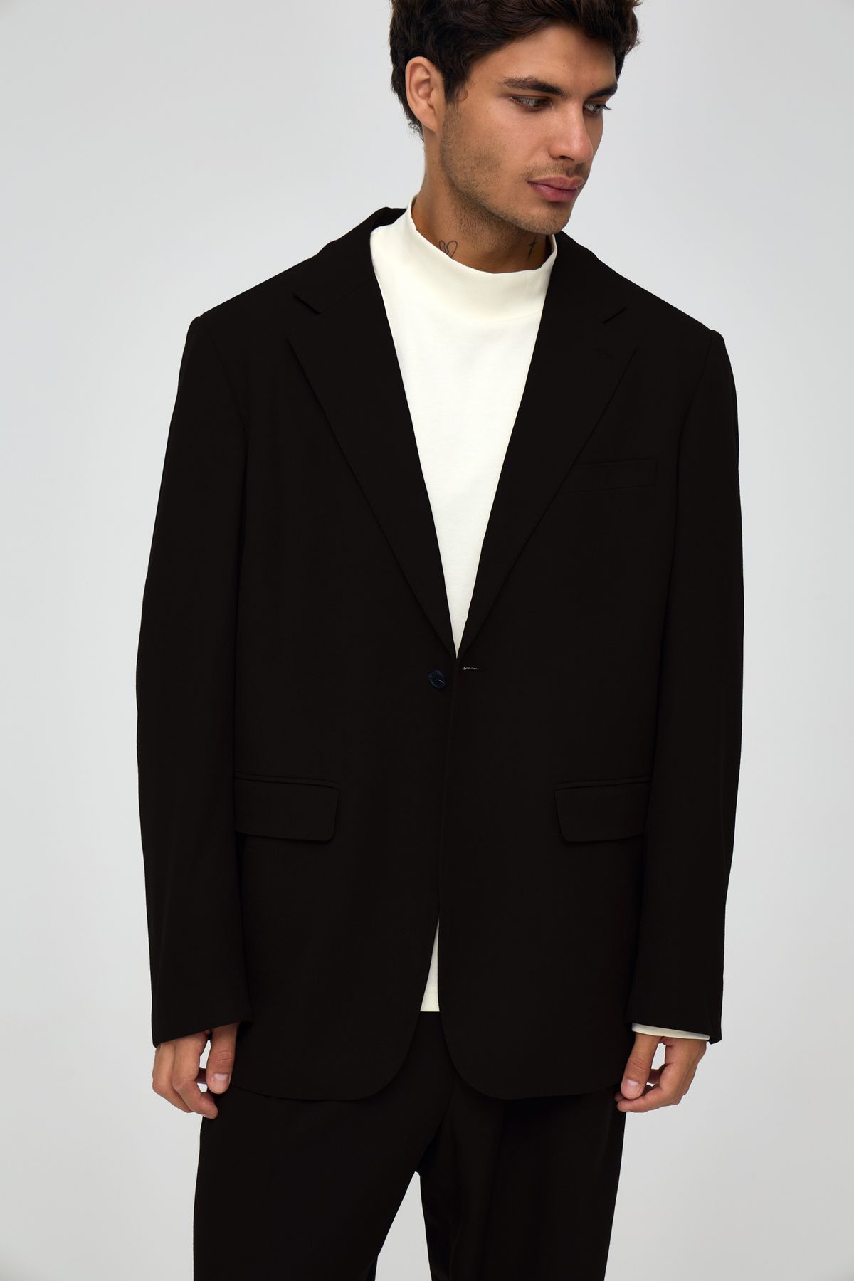 Основная ткань: 55% полиэстер, 23% шерсть, 20% вискоза, 2% эластан; Подкладка: 100% полиэстер