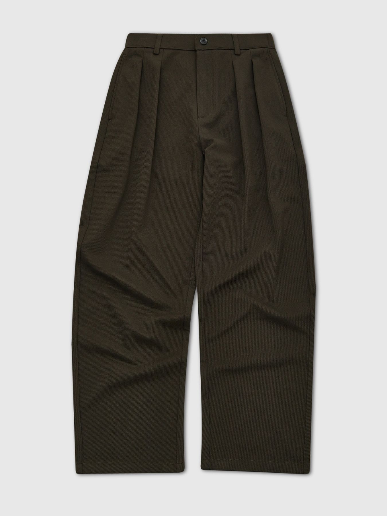 Мужские брюки с защипами из смесового хлопка свободного кроя. Модель имеет передние и прорезные карманы сзади, эластичный пояс. Застежка на молнию и пуговицу. Универсальный фасон легко сочетается с разными стилями.