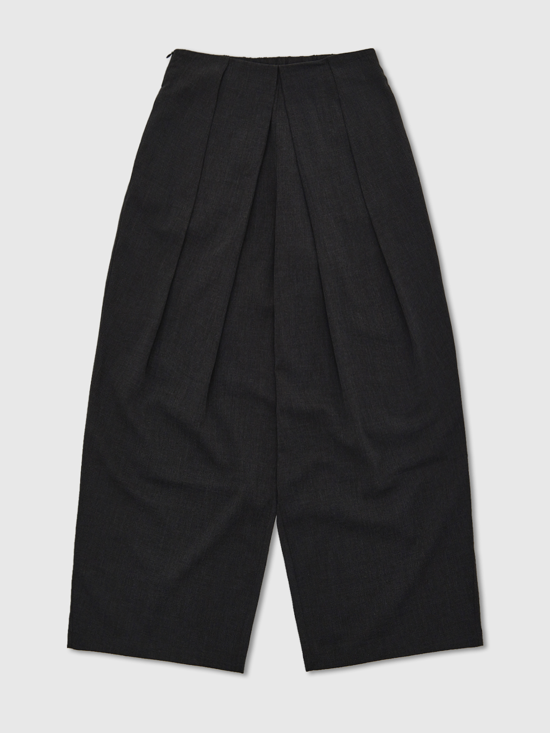 Брюки широкого кроя имеют комфортную посадку и подходят для повседневной носки. Боковая застежка на молнию сохраняет чистоту линии пояса. Две складки спереди на каждой брючине создают эффект запаха и формируют выразительный силуэт. Резинка по поясу сзади и прорезные карманы обеспечивают удобство. Смесовый материал с добавлением шерсти делает модель практичной для повседневного гардероба.