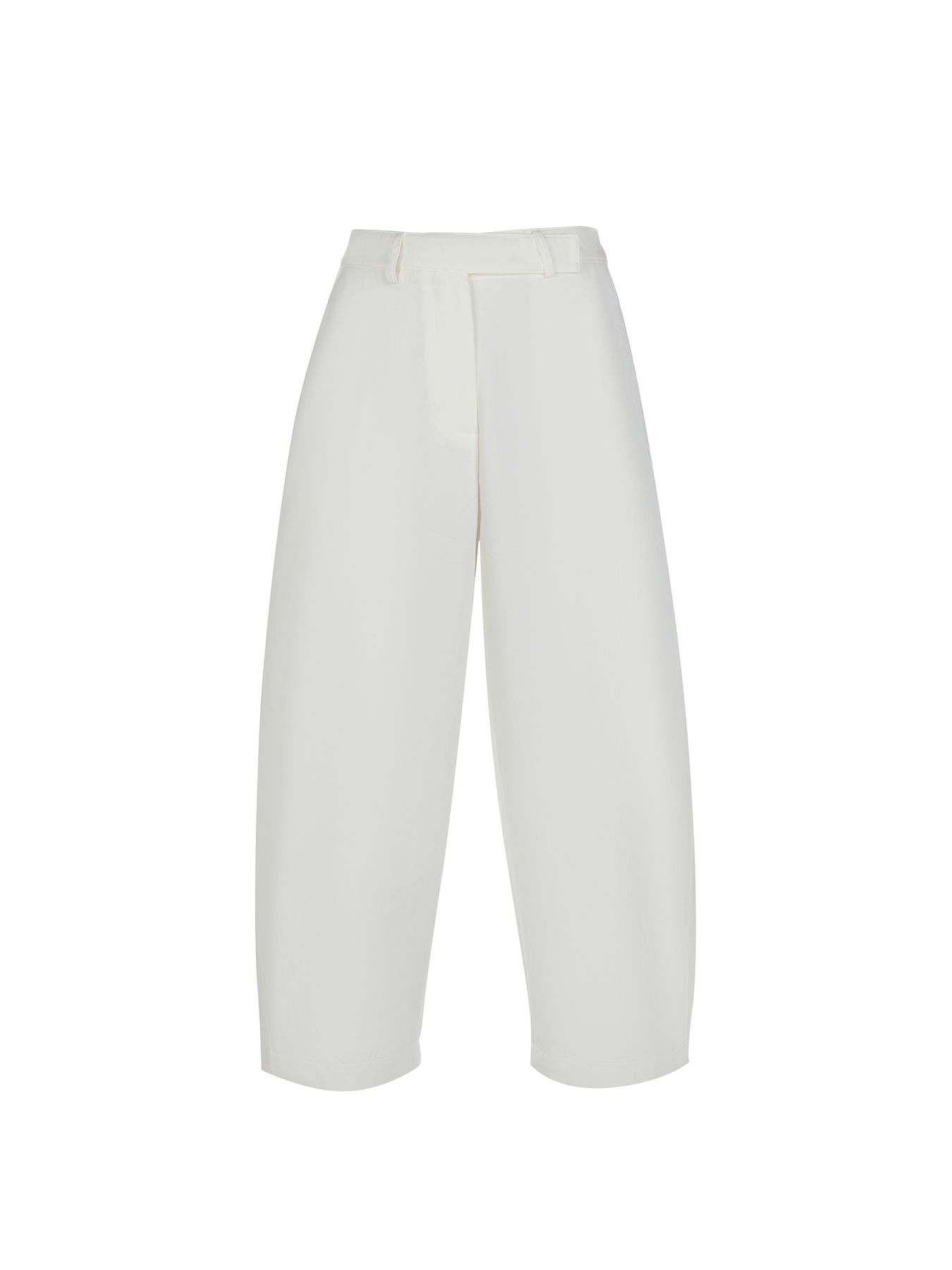 Объемные в бедрах брюки с зауженными манжетами. Изделие выполнено из смесового хлопка в базовом оттенке. Модель имеет высокую посадку на талии, застежку на потайную молнию и пуговицу. Универсальная модель дополнит как строгие, так и более расслабленные образы.