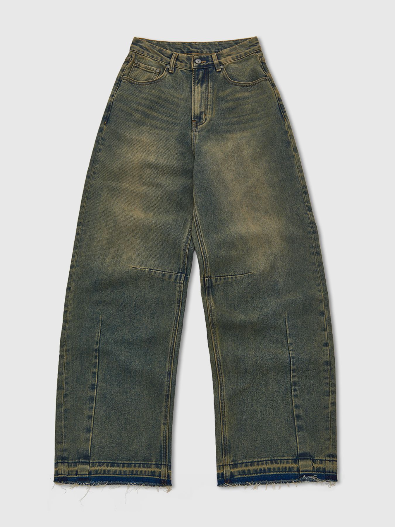 Джинсы широкого кроя с состаренным эффектом