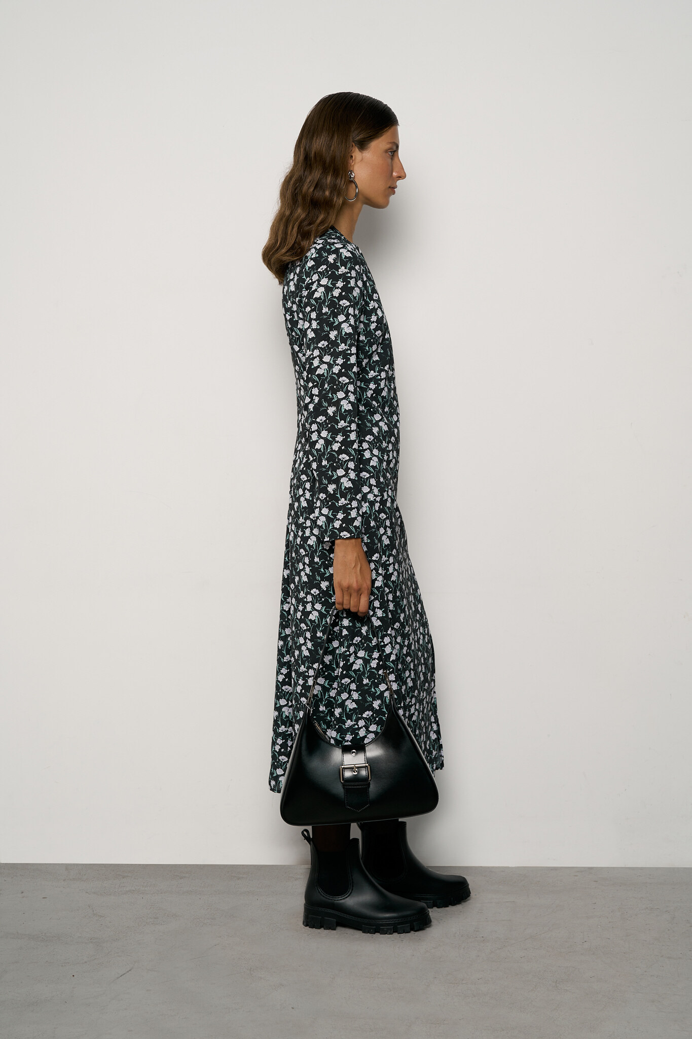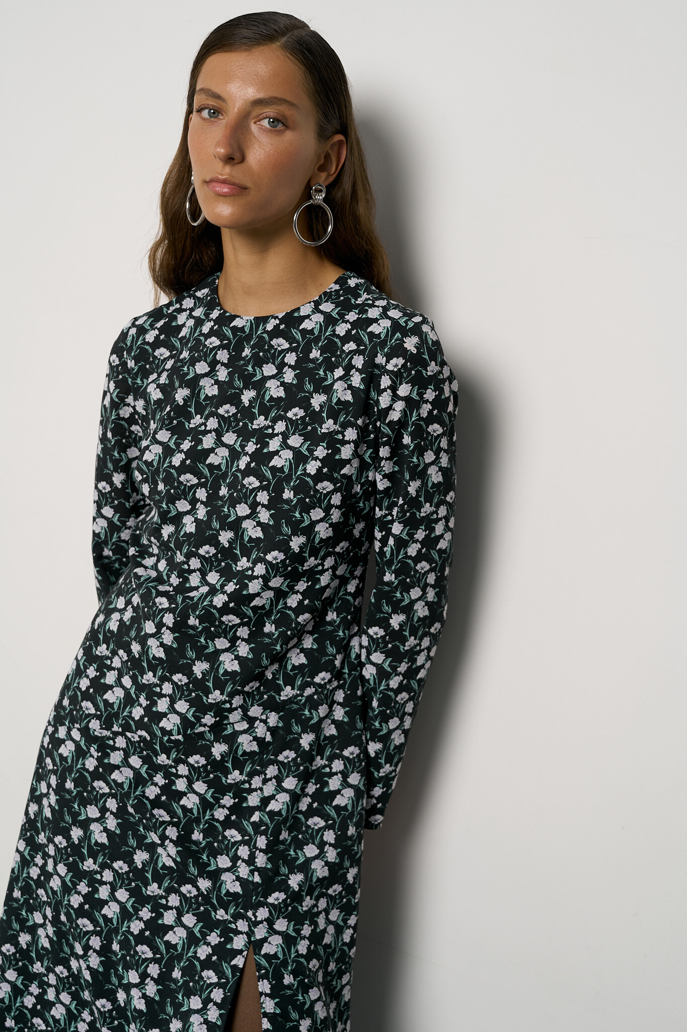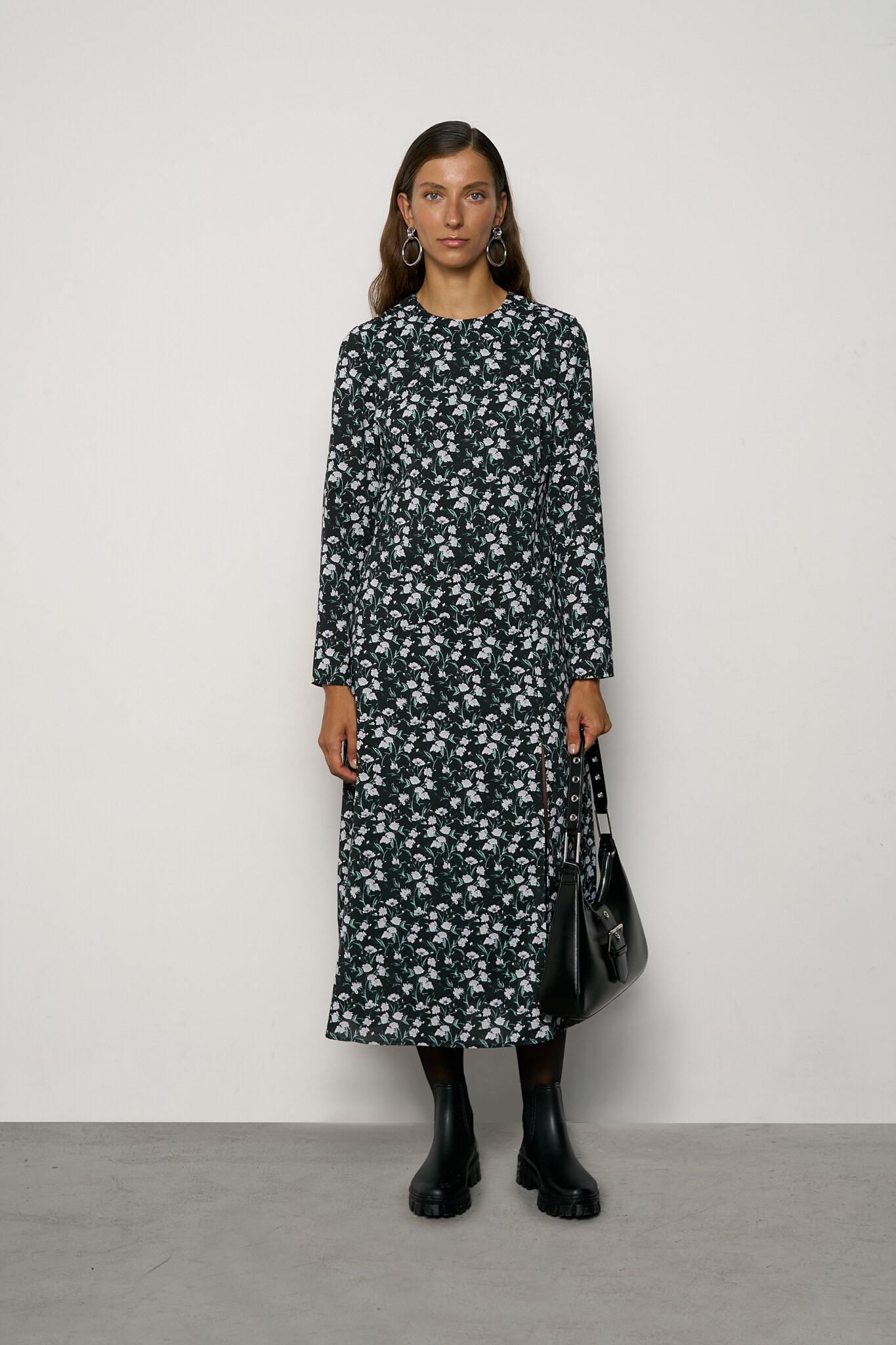 Удлиненное платье с круглым вырезом и небольшим разрезом сбоку. Это платье выполнено из полиэстера и имеет подкладку из хлопка. Оно отлично подойдет для любого случая благодаря своему лаконичному дизайну и теплоизоляционным свойствам. Платье сочетает в себе комфорт, качество и уникальный стиль. Приобрести это платье можно уже сейчас!