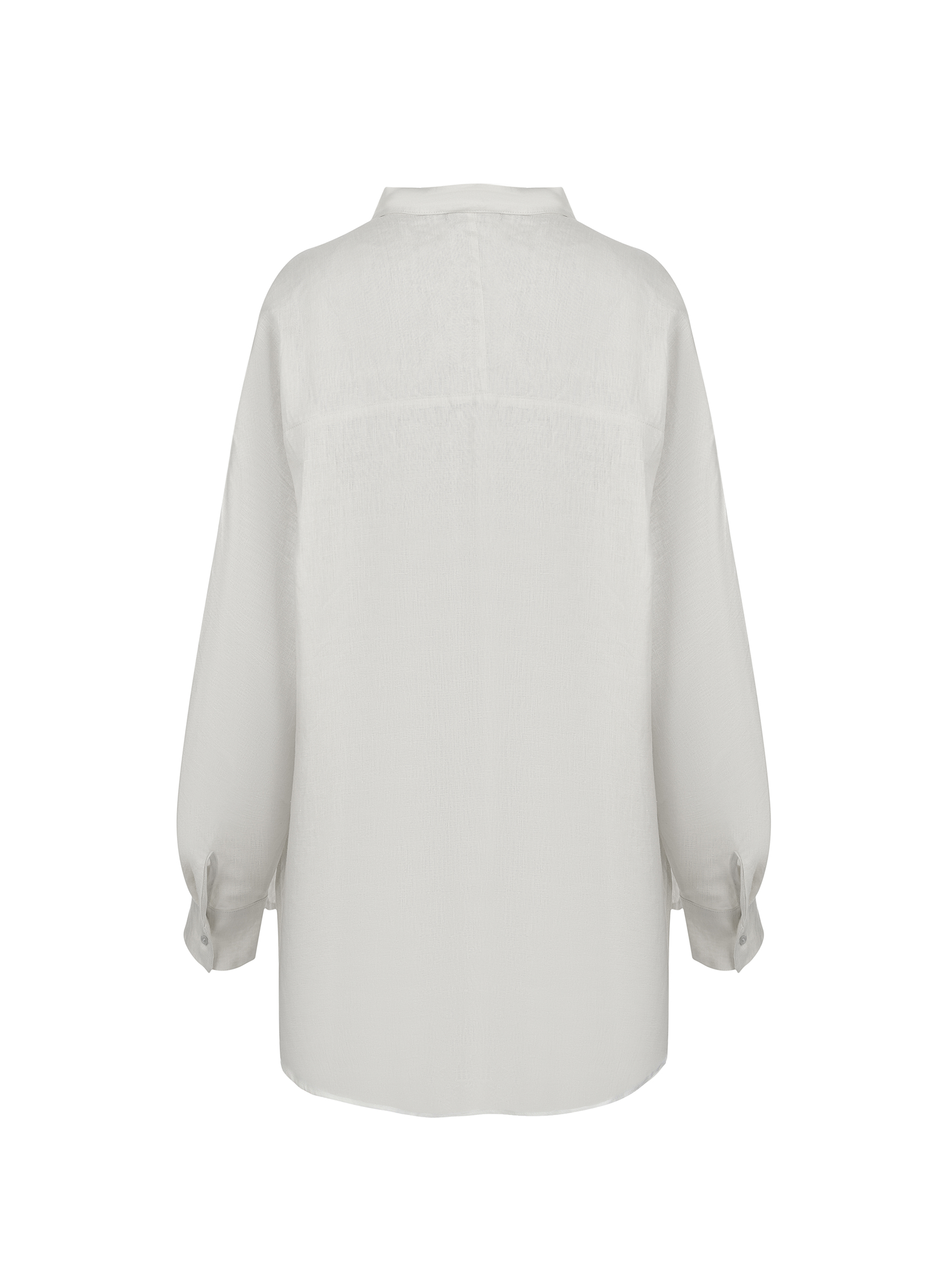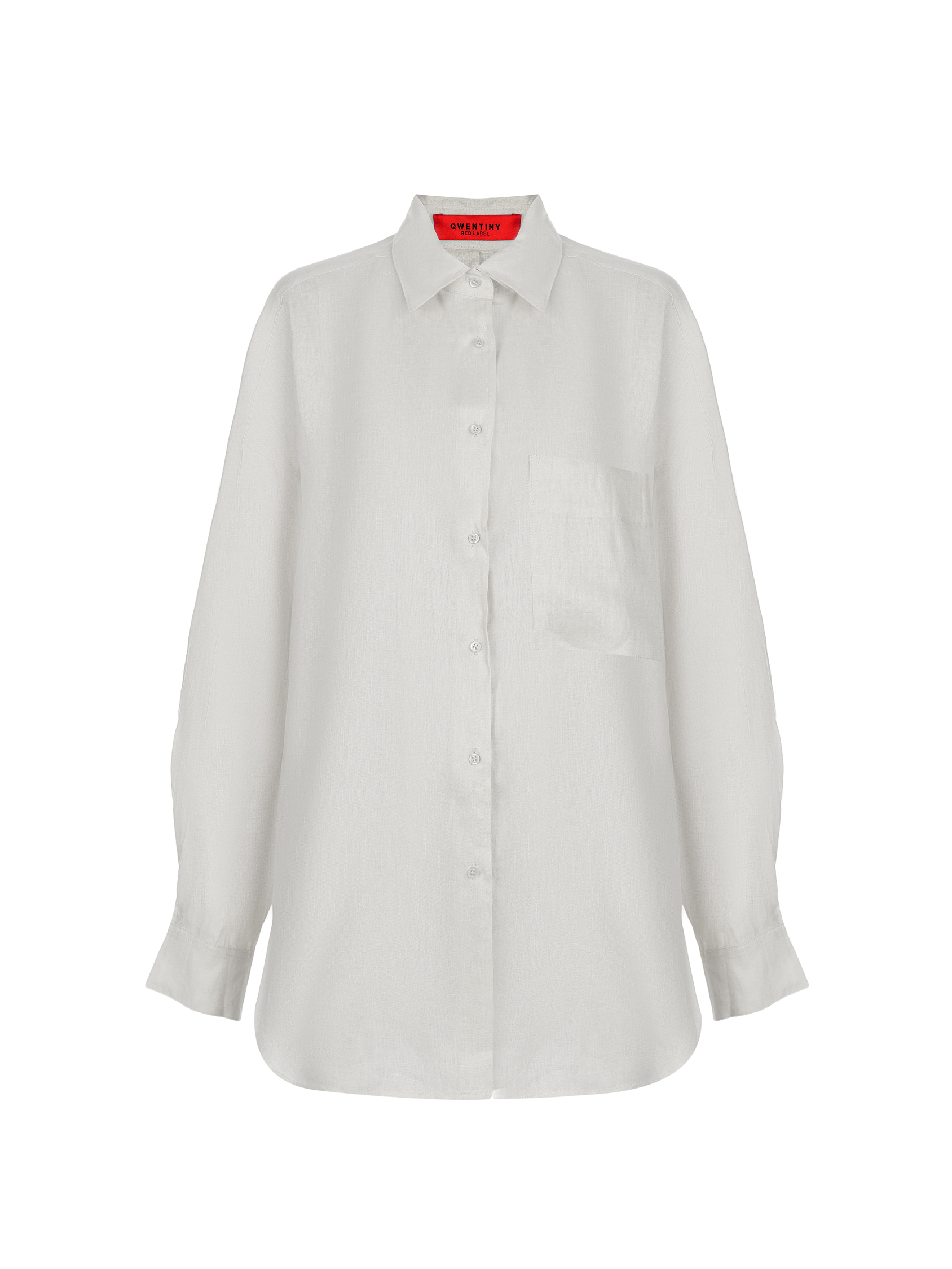 Женская рубашка свободного кроя из 100% льна. Модель имеет длинные рукава с манжетами, отложной воротник, накладной карман на груди. Застежка на пуговицы. Универсальный фасон легко сочетается с разными стилями.