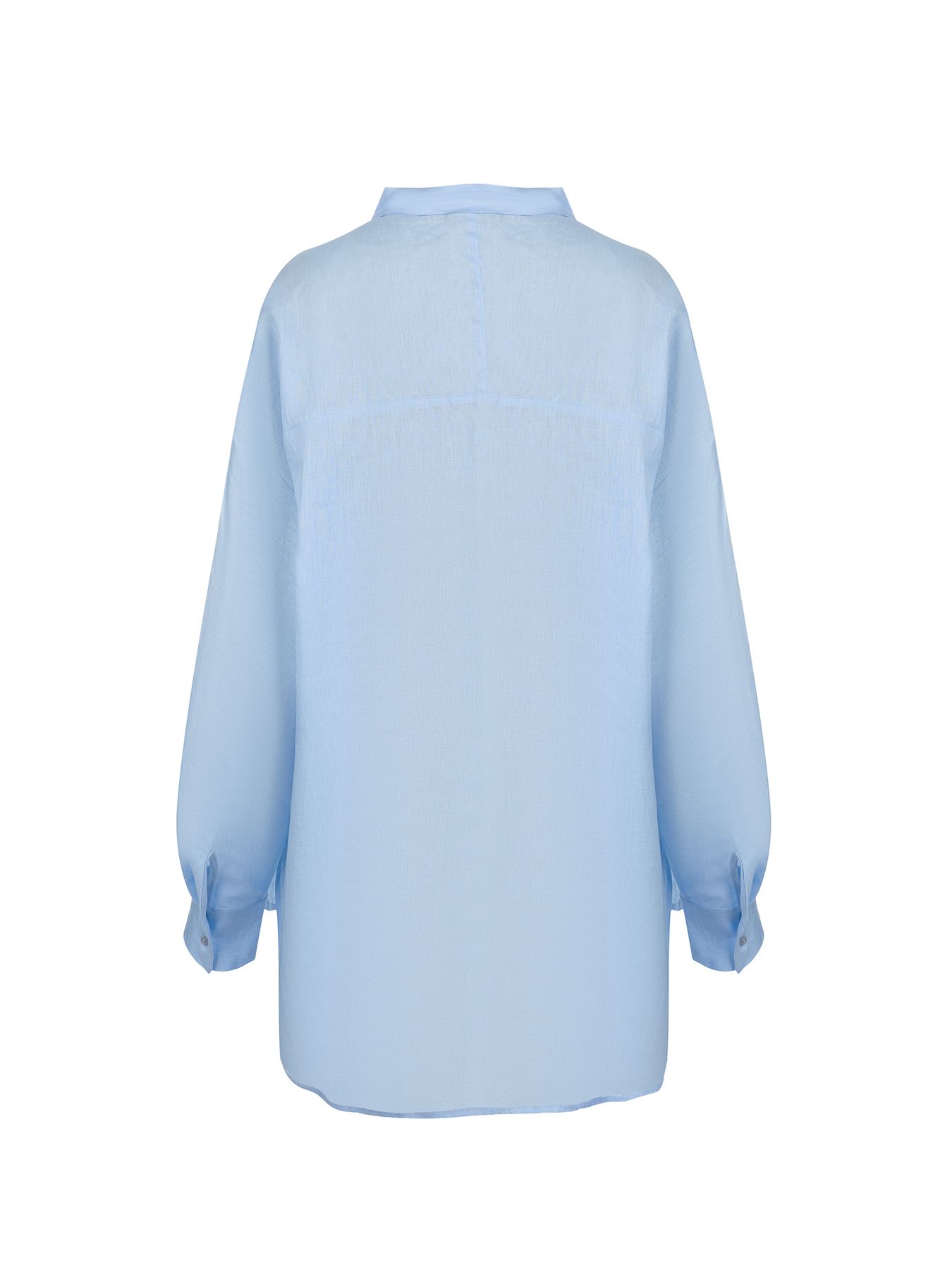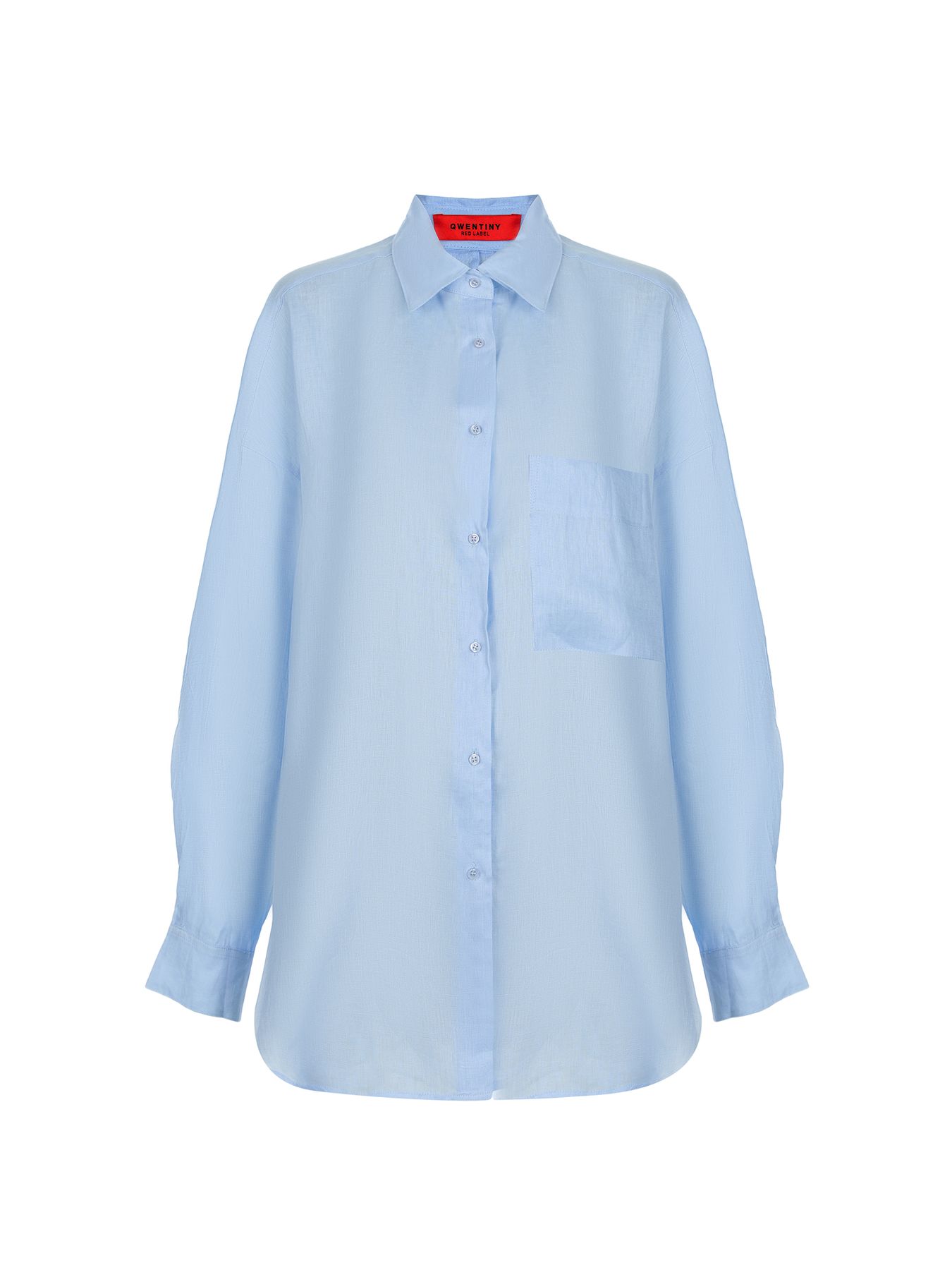 Женская рубашка свободного кроя из 100% льна. Модель имеет длинные рукава с манжетами, отложной воротник, накладной карман на груди. Застежка на пуговицы. Универсальный фасон легко сочетается с разными стилями.