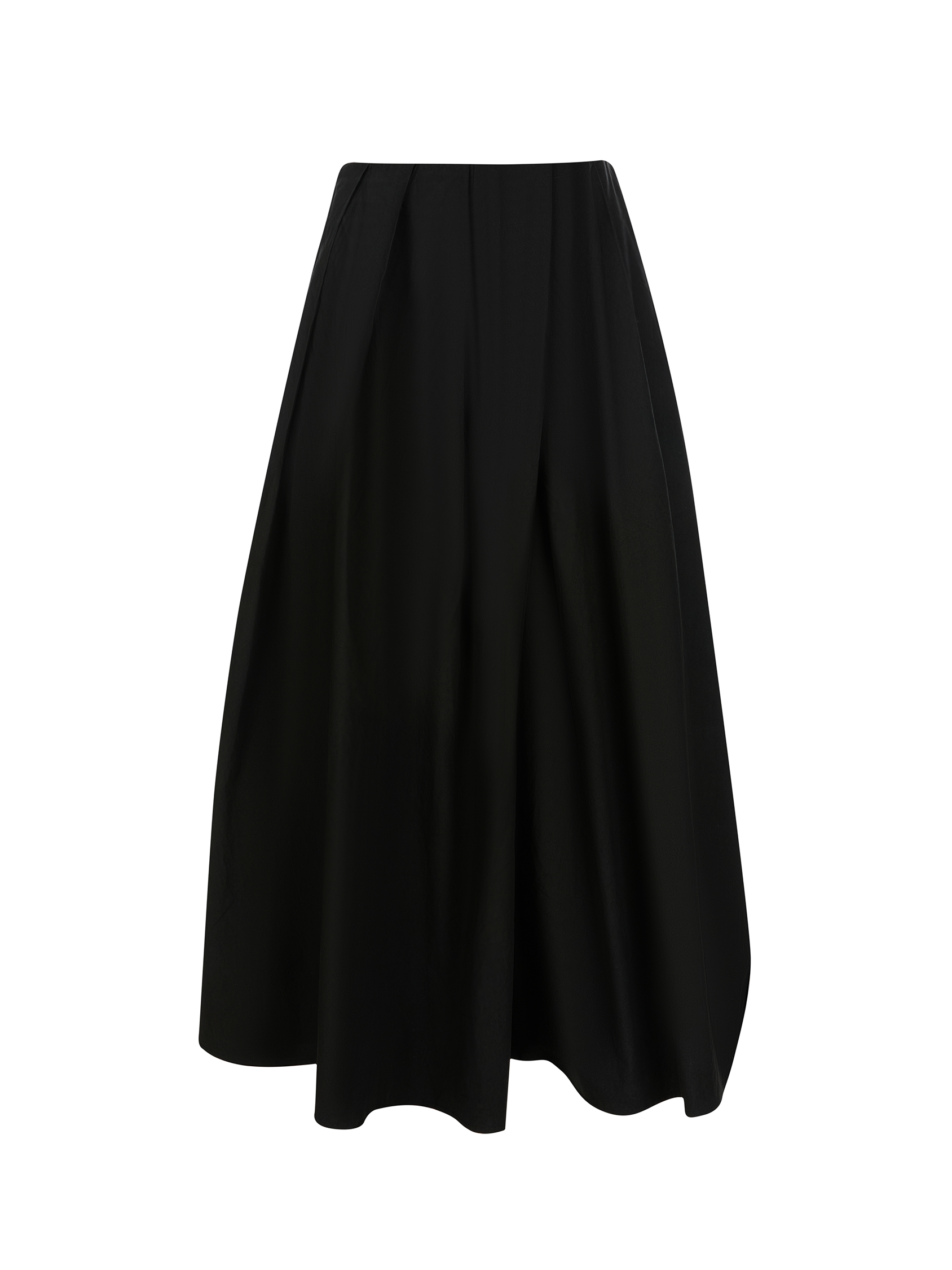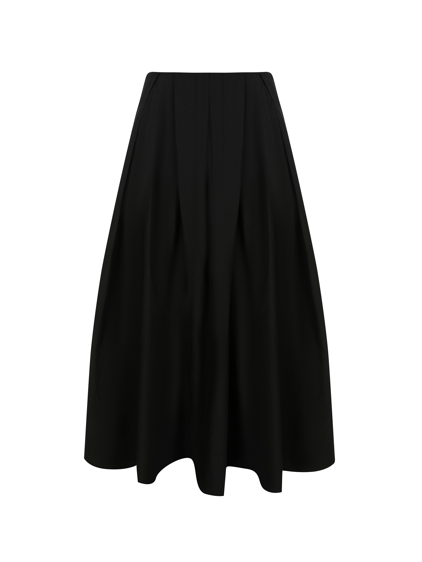 Юбка в длине миди выполнена из 100% хлопка в базовом черном цвете. Модель имеет свободный крой и А-силуэт. Изделие на подкладке. Универсальная модель дополнит как строгие, так и более расслабленные образы.