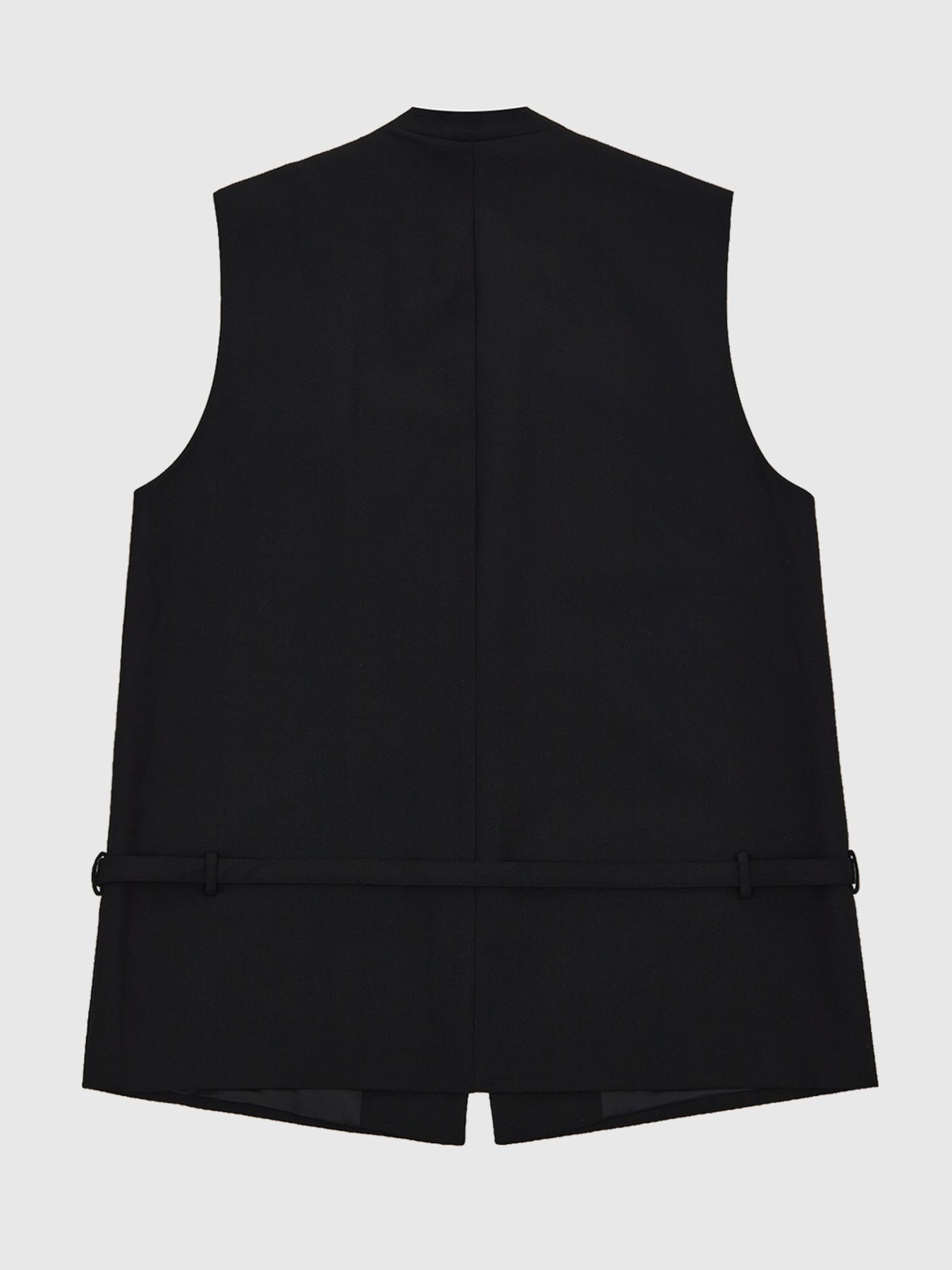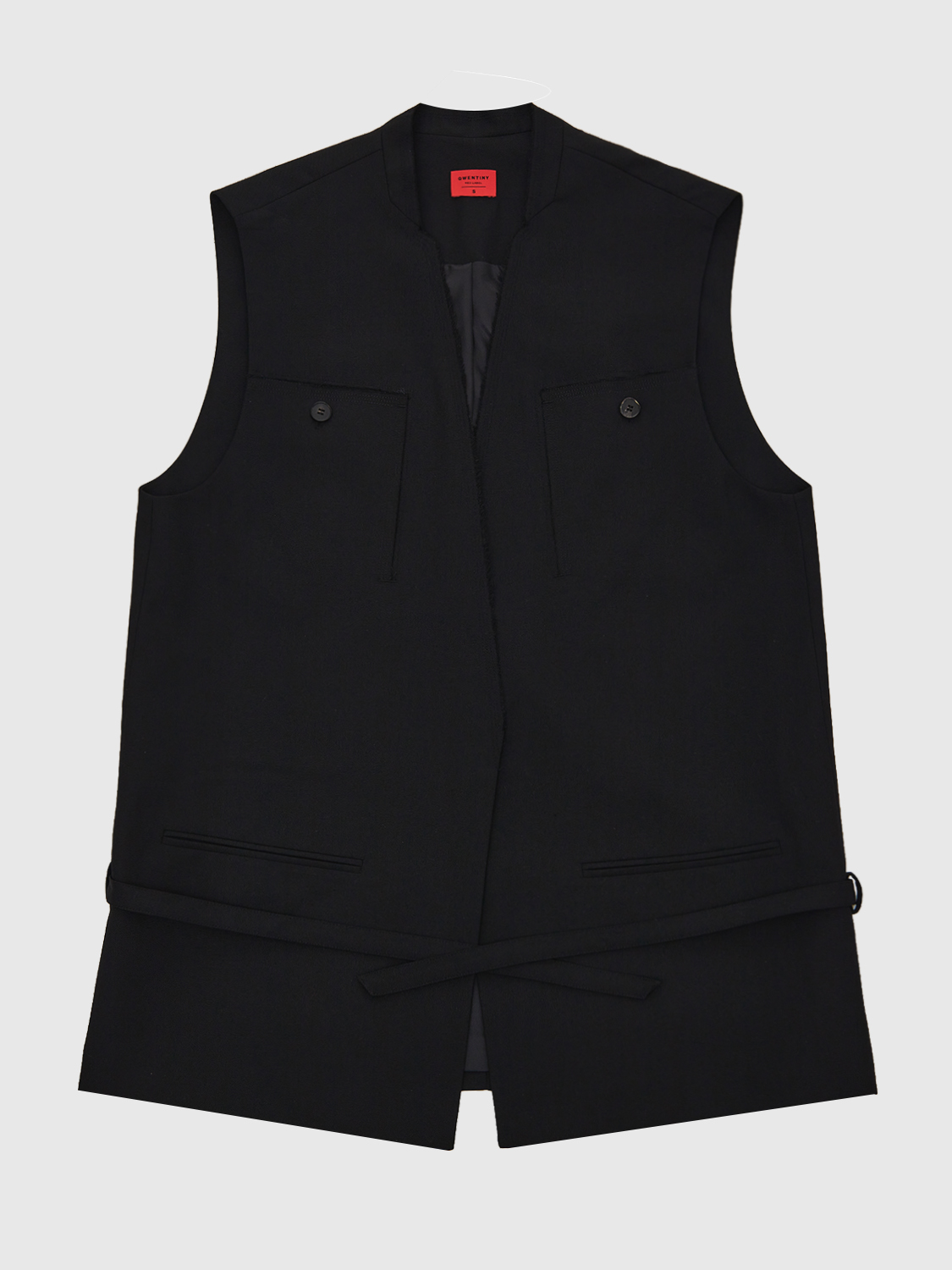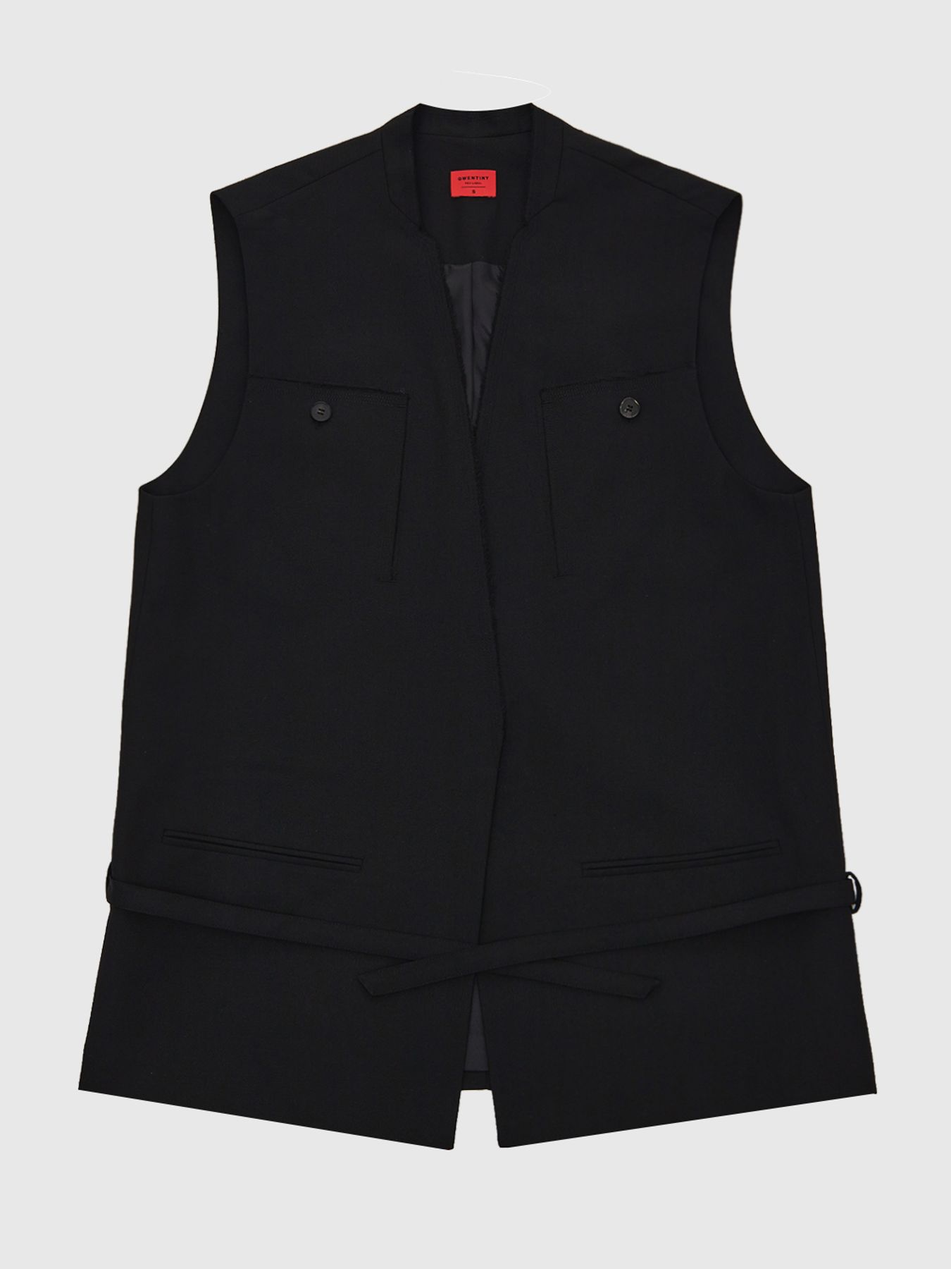 Жилет удлиненного кроя имеет комфортную посадку и подходит для повседневной носки. Смесовый материал с содержанием шерсти обеспечивает мягкость и комфорт в прохладную погоду. Черный цвет делает модель базовой и легко сочетаемой с разными элементами гардероба. Спереди расположены два кармана с клапаном в области груди и прорезные карманы ниже, что добавляет функциональности. Изделие дополнено шлевками, тонким ремешком и подкладкой, что придает образу аккуратность и завершенность.